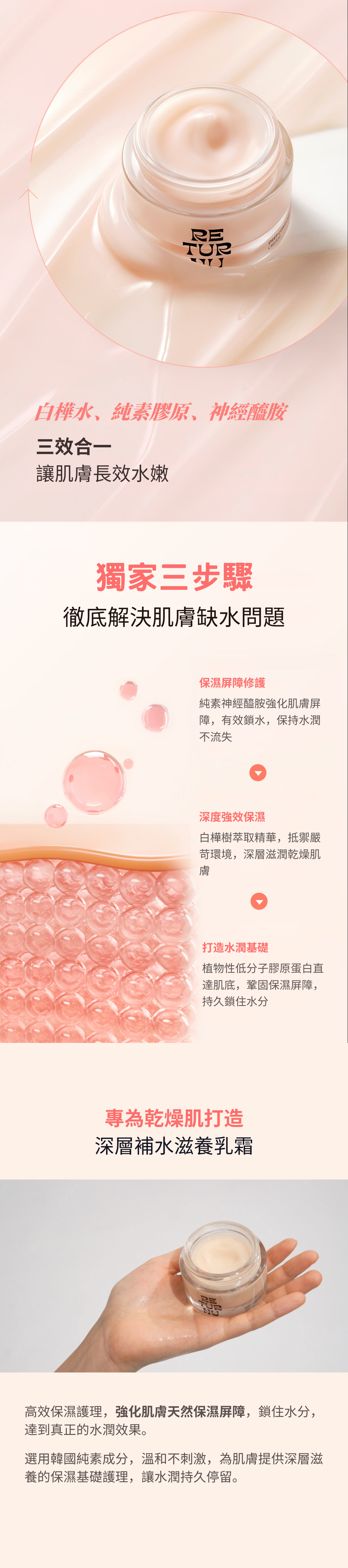 專為乾燥、敏感、缺水肌膚設計,內含: